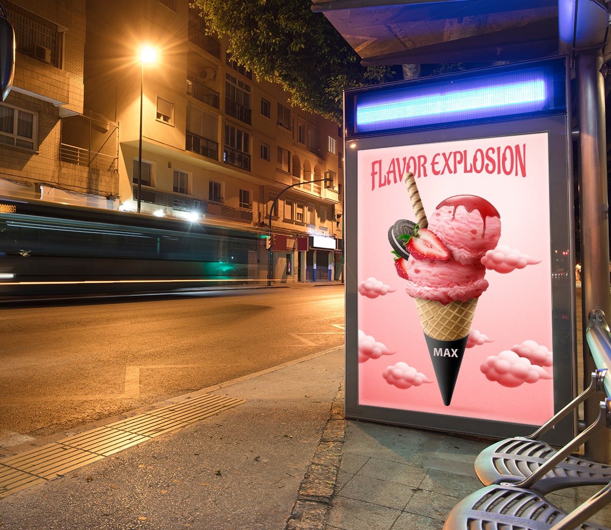 Scenske reklame i posteri u ambijentu sa kontrolisanim osvetljenjem