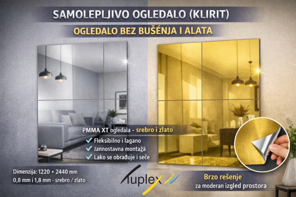 U našoj ponudi sada su dostupna samolepljiva ogledala (KLIRIT) koja predstavljaju moderno i praktično rešenje za uređenje enterijera – bez bušenja, alata i komplikovane montaže.